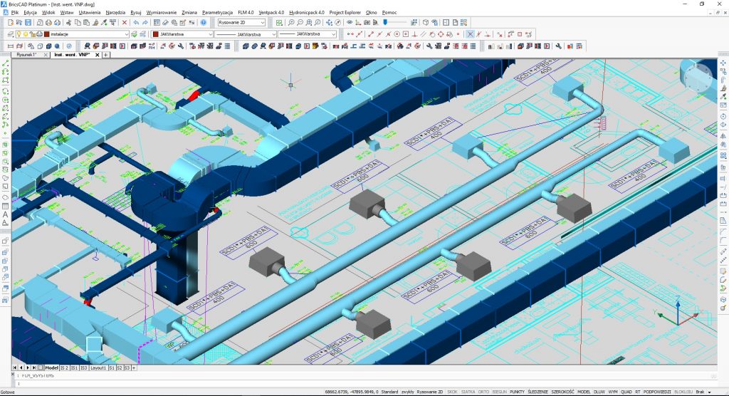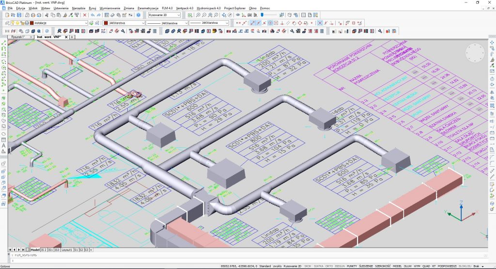 • projektowania w widokach 3D, przygotowywania projektów do druku, exportu geometrii elementów Ventpack poza środowisko dwg (np. do formatu rvt i IFC), raportowania błędów, przygotowywania prezentacji zaprojektowanej instalacji z wykorzystaniem renderowania i wizualizacji dynamicznej,
